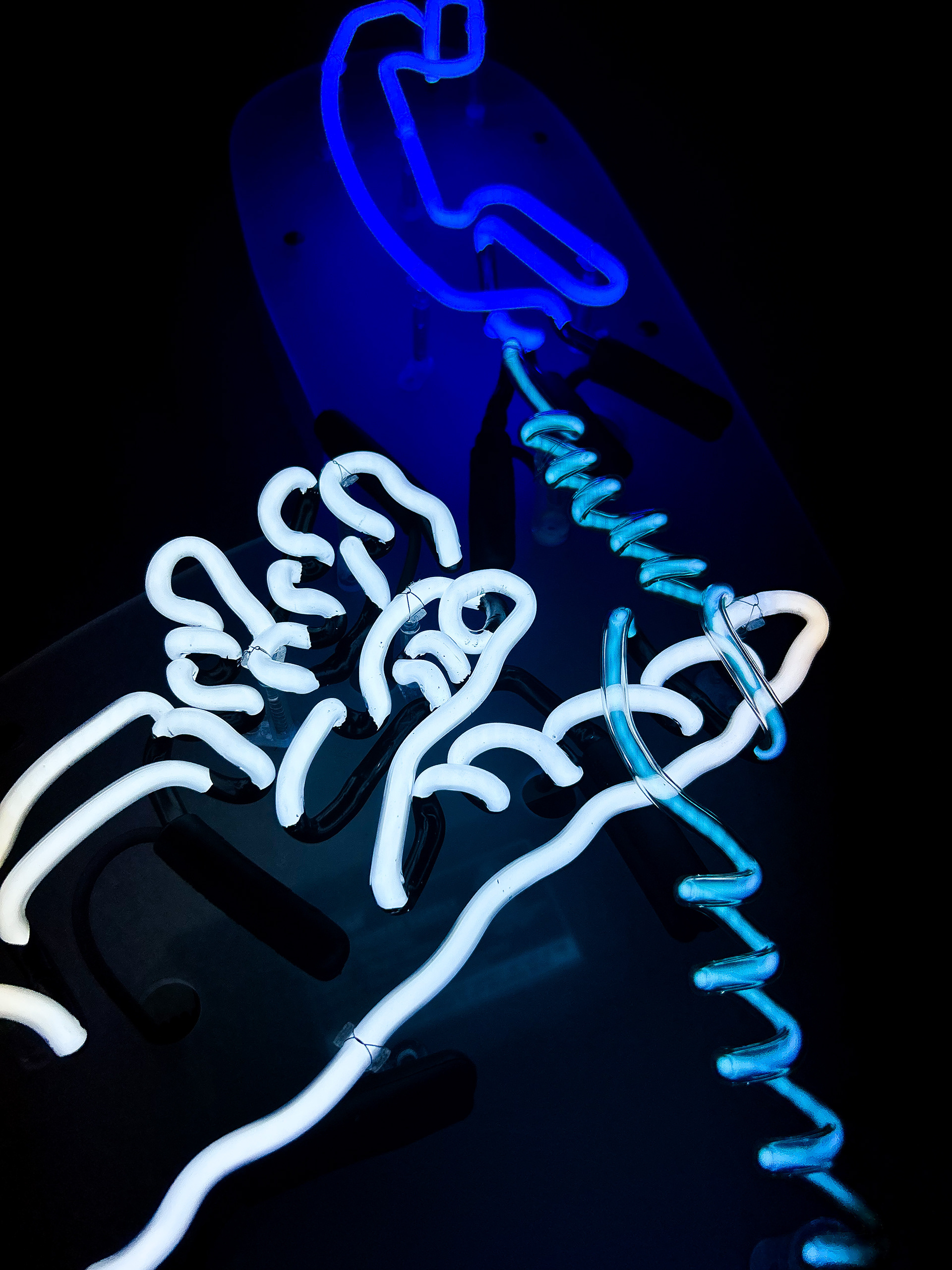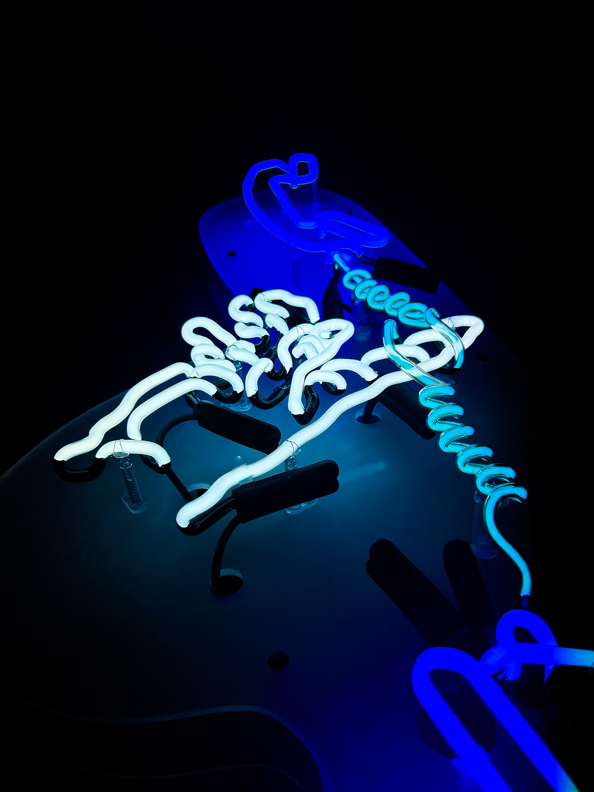 8mm Ocean Blue, Snow White, and Clear glass filled with Mercury and Argon, Mounted to custom matte acrylic backing