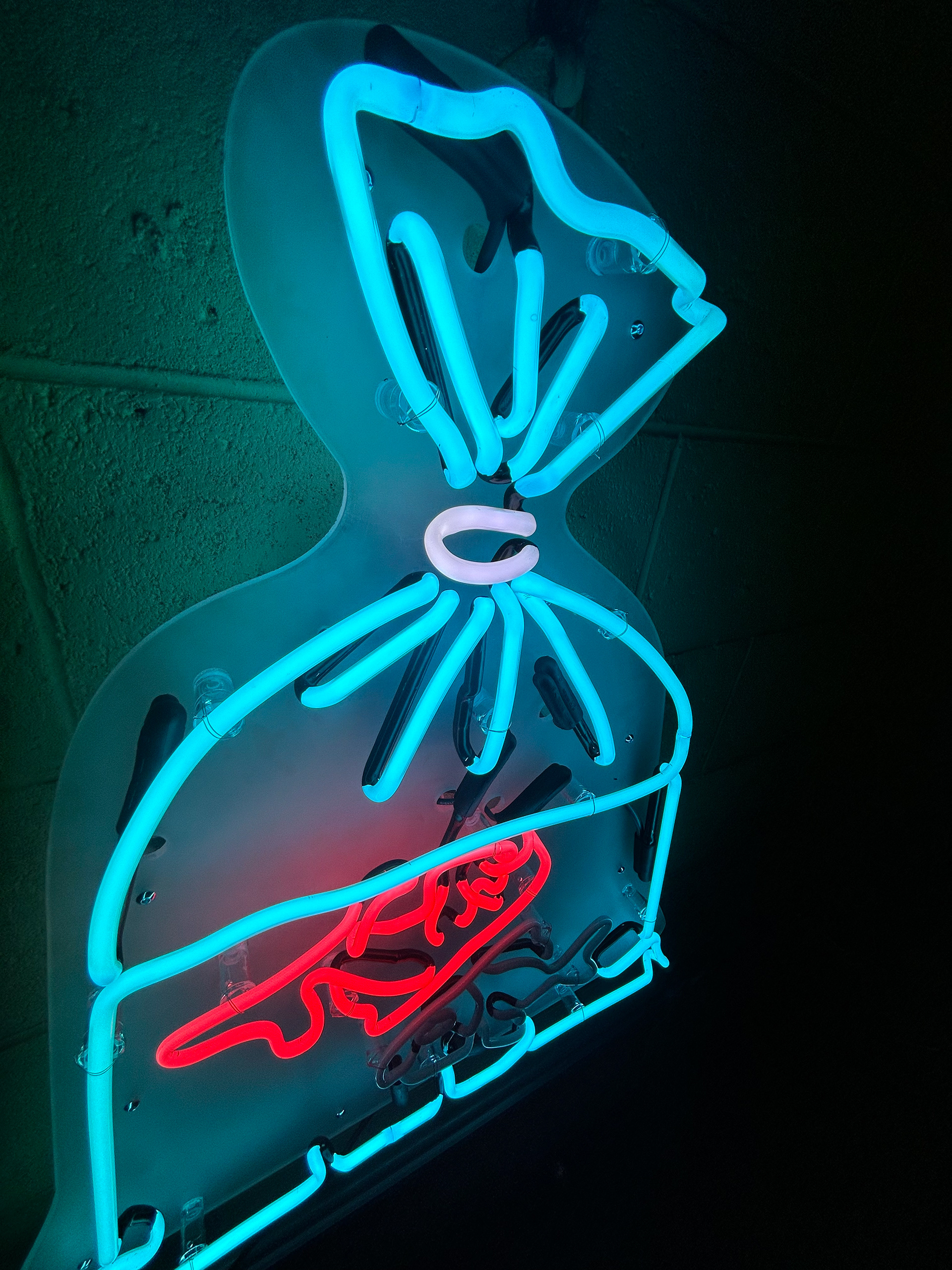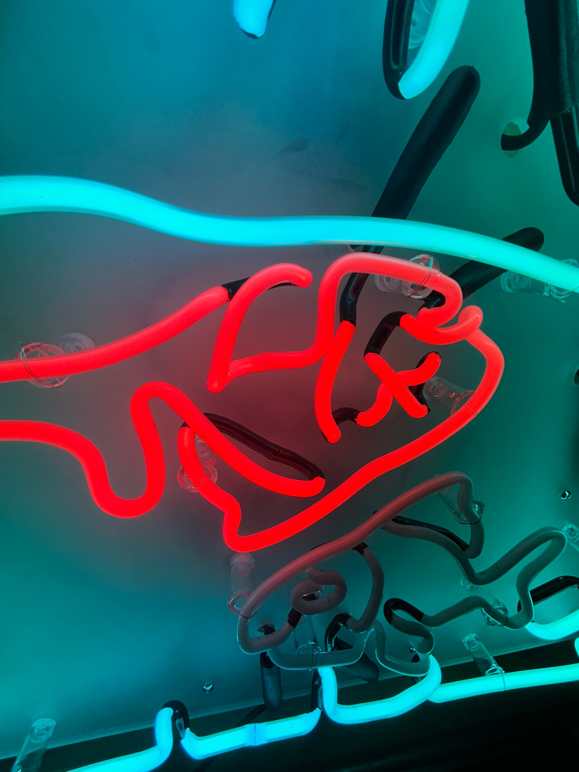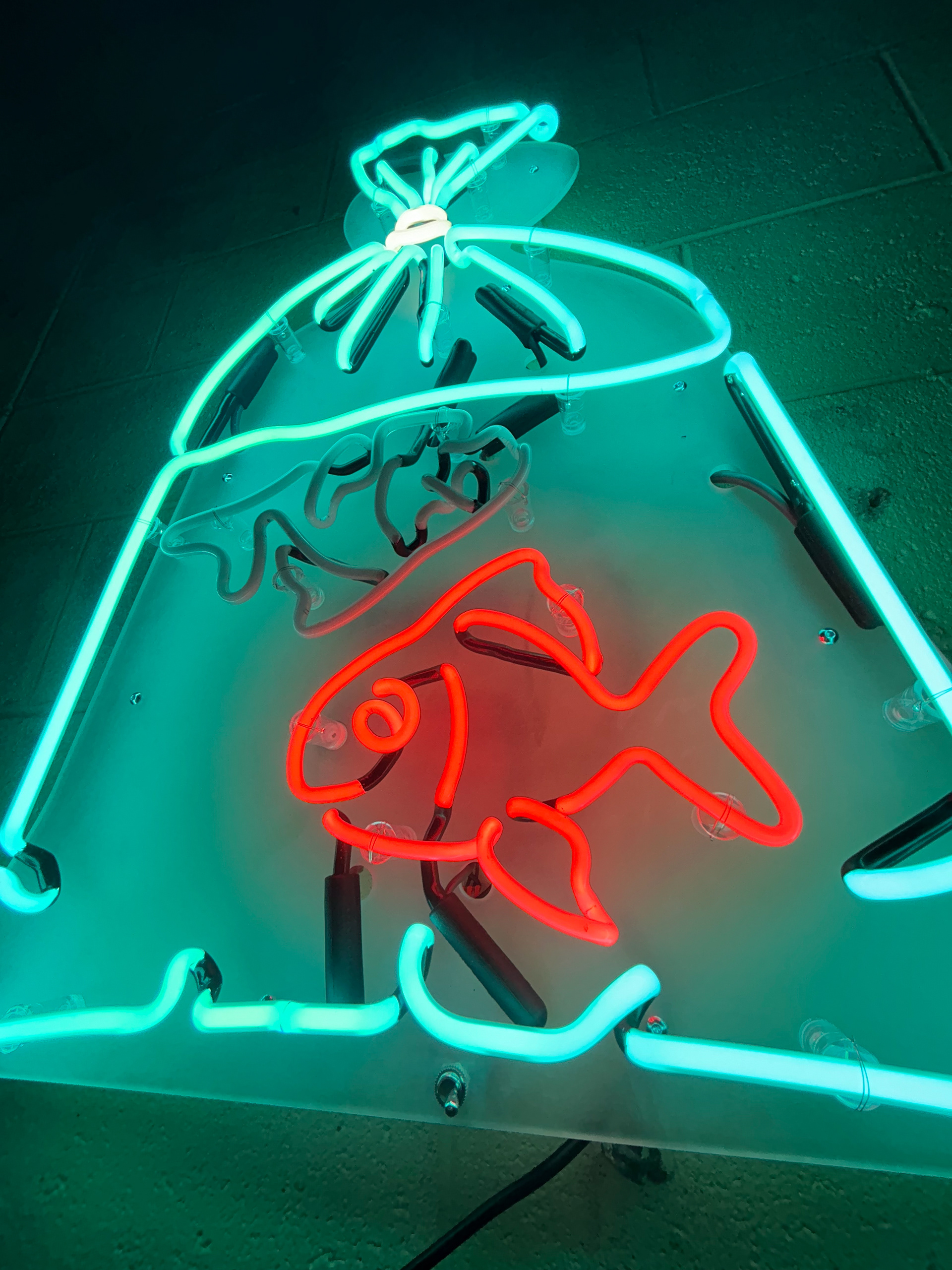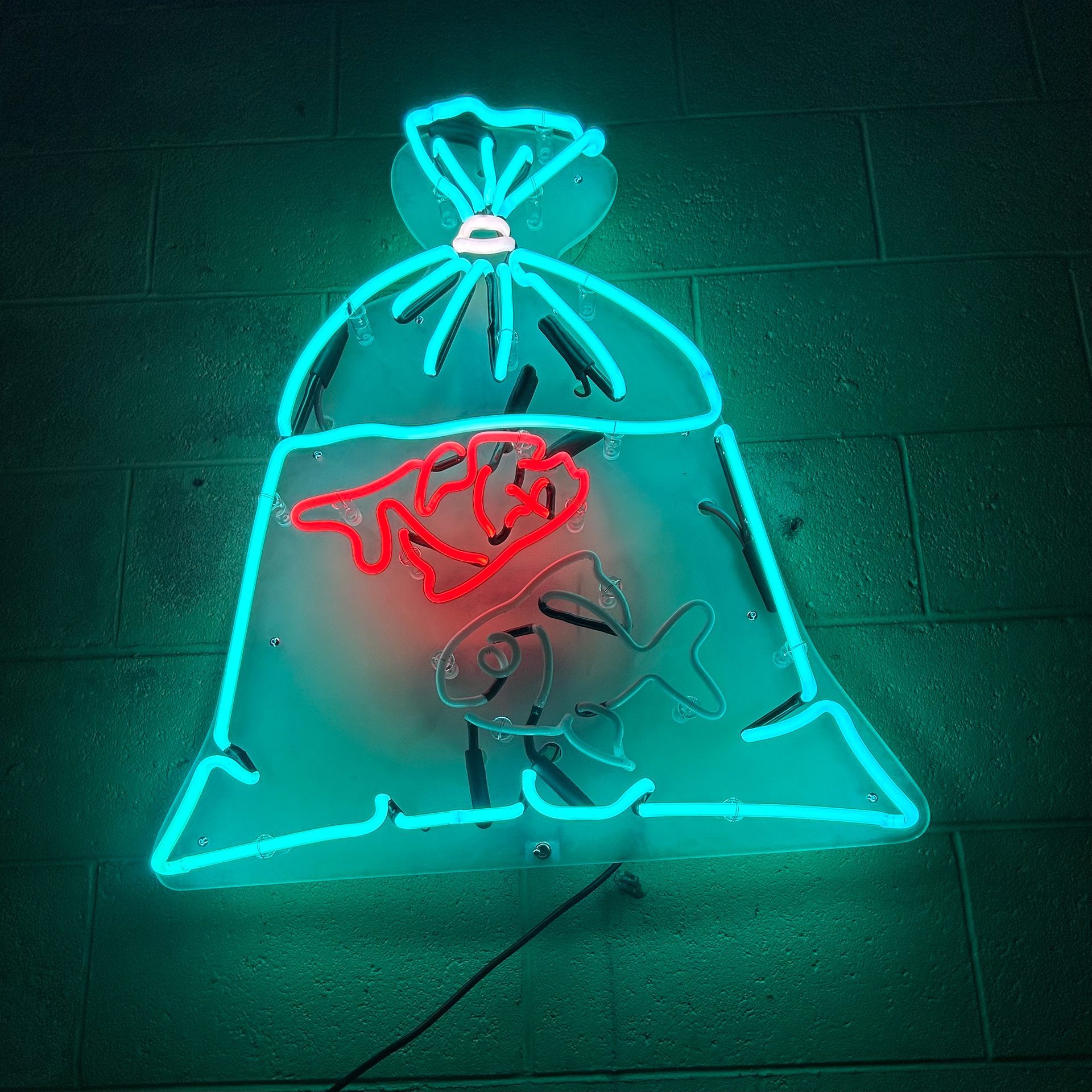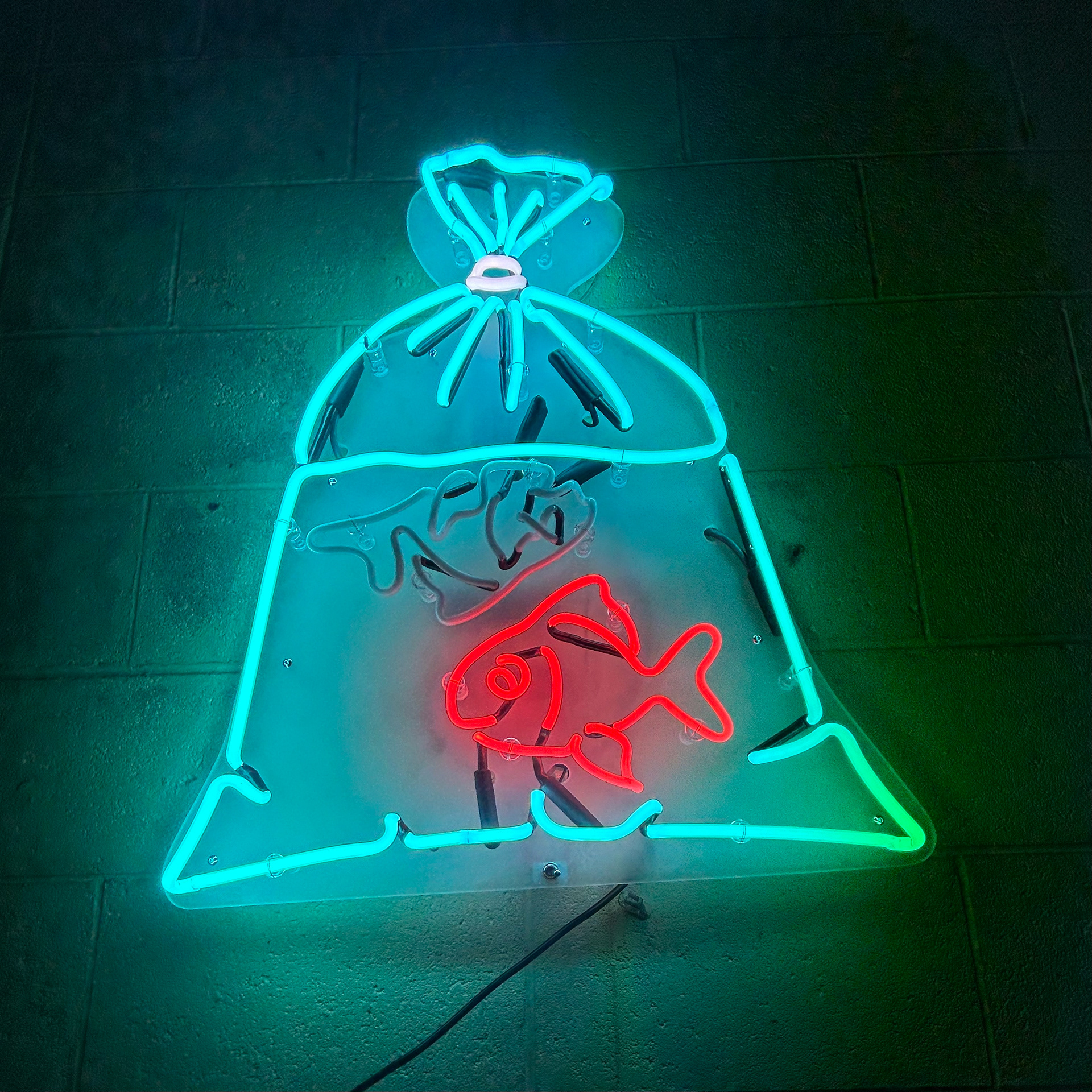 10mm Turquoise Glass filled with Argon and Mercury, 8mm Green Glass filled with Neon. Mounted on Sanded Clear Acrylic.