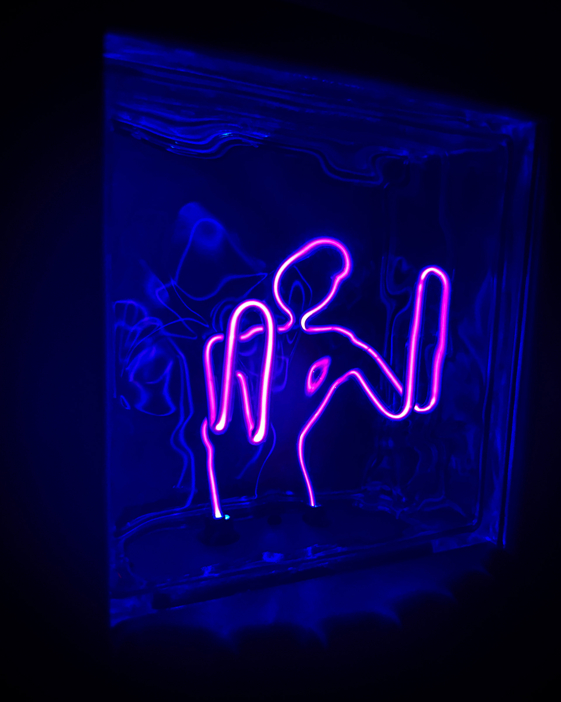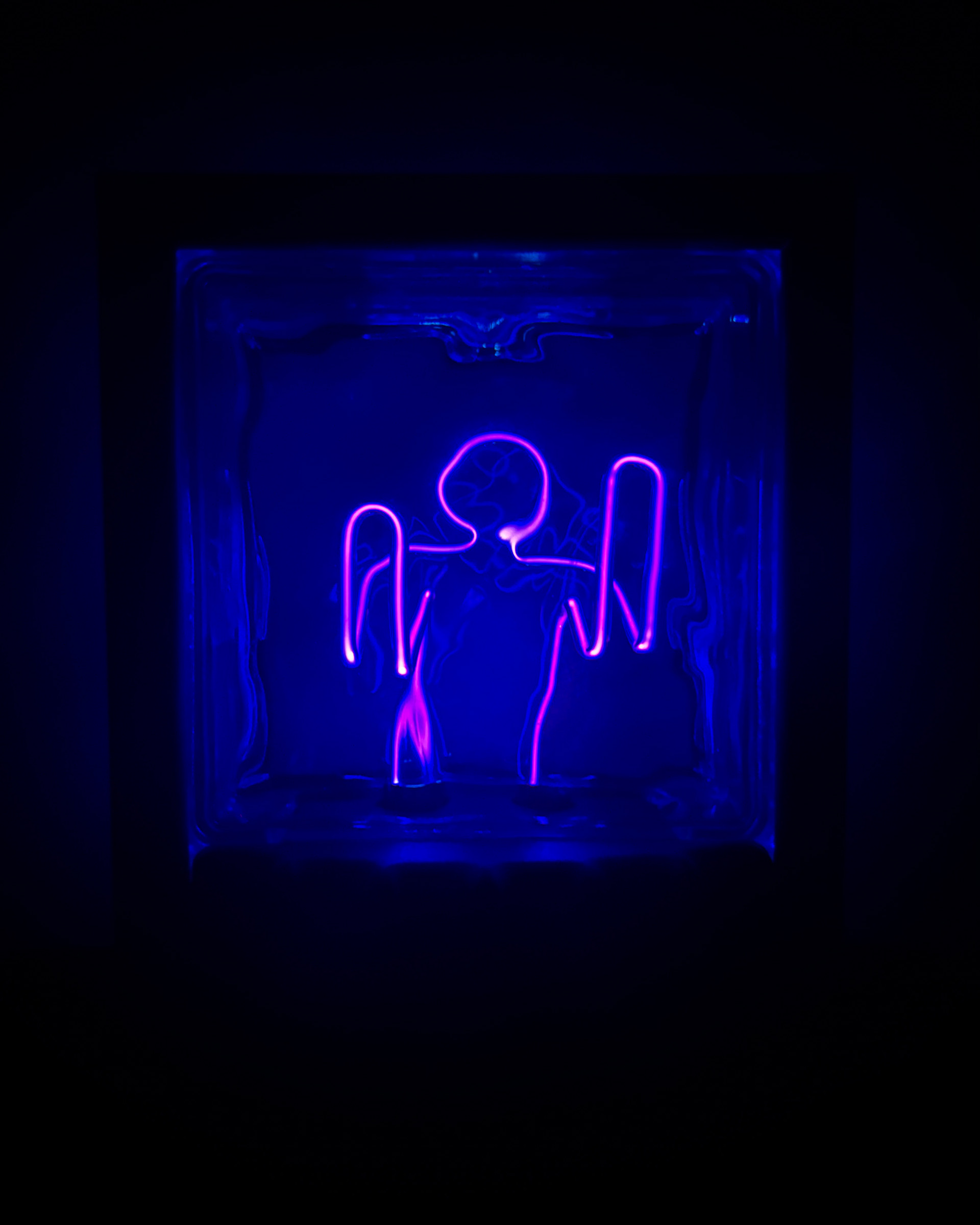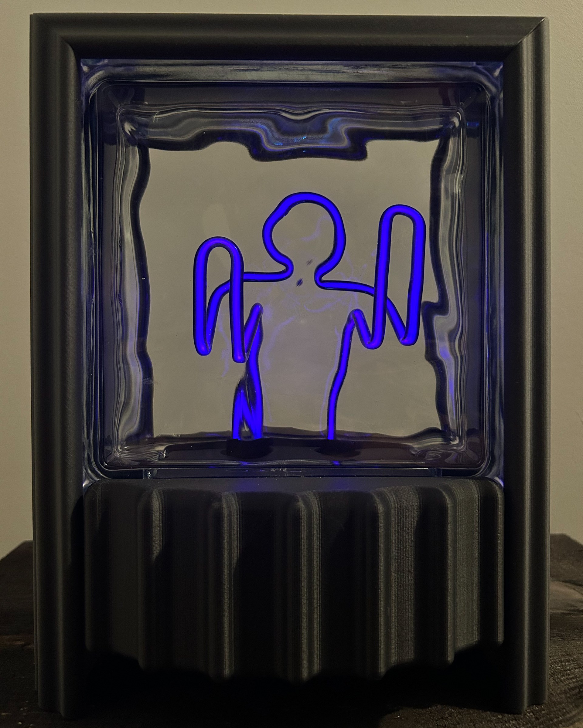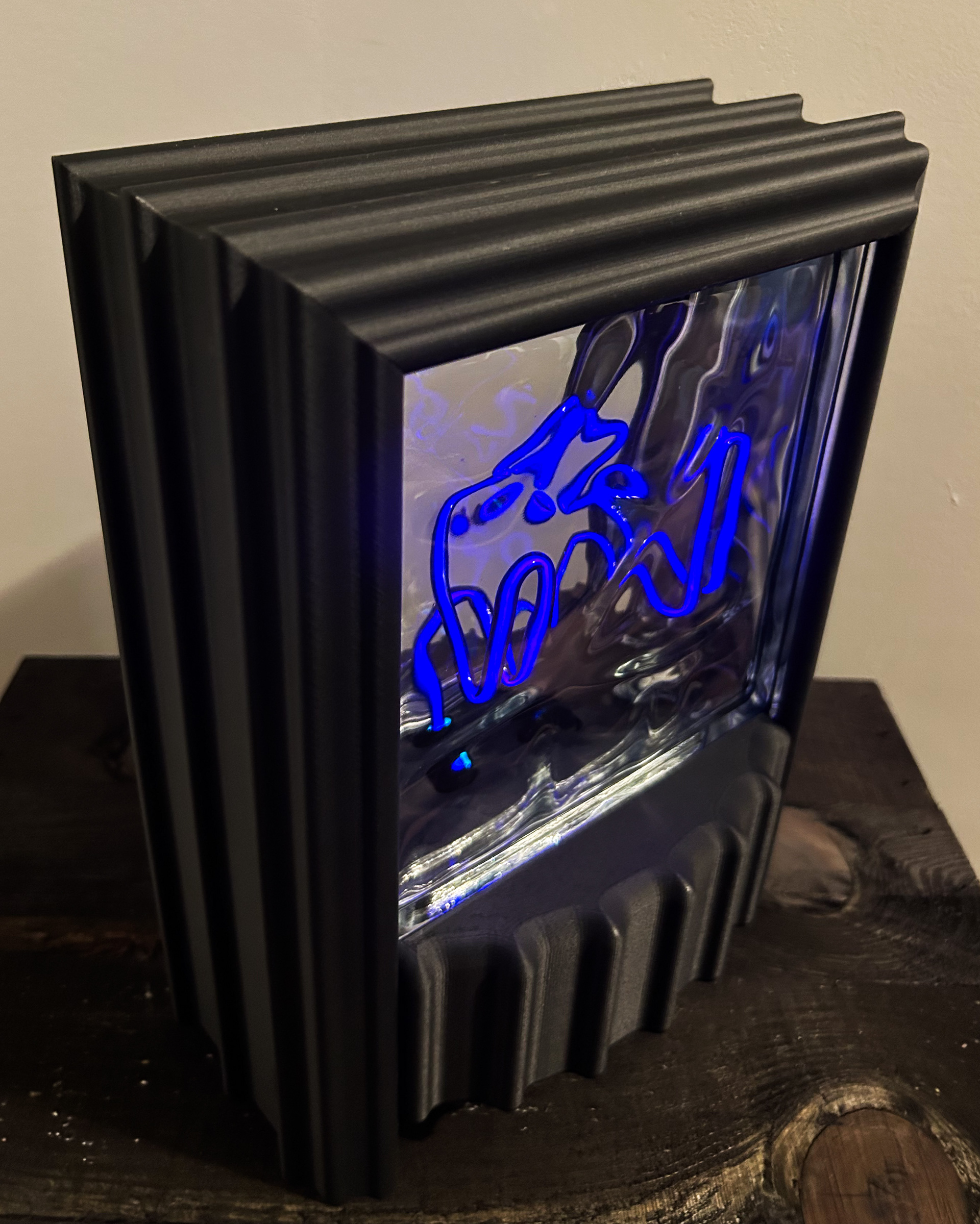 6mm Black Light Glass filled with Mercury and Argon. Second-Hand Glass block, 3D printed frame